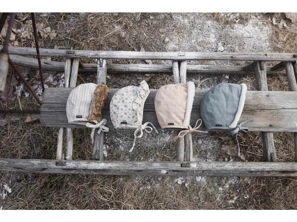 Elodie zimní čepeček z nové kolekce je navržen tak, aby vypadal jako retro čepeček a zároveň byl 100% funkční. Podšívka je z velmi měkké tkaniny pro větší pohodlí. Lze je pod krkem zavázat pomocí šňůrek. Kolem hlavičky má čepeček měkkou a příjemnou kožešinu.